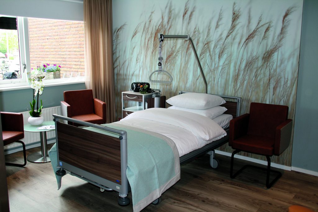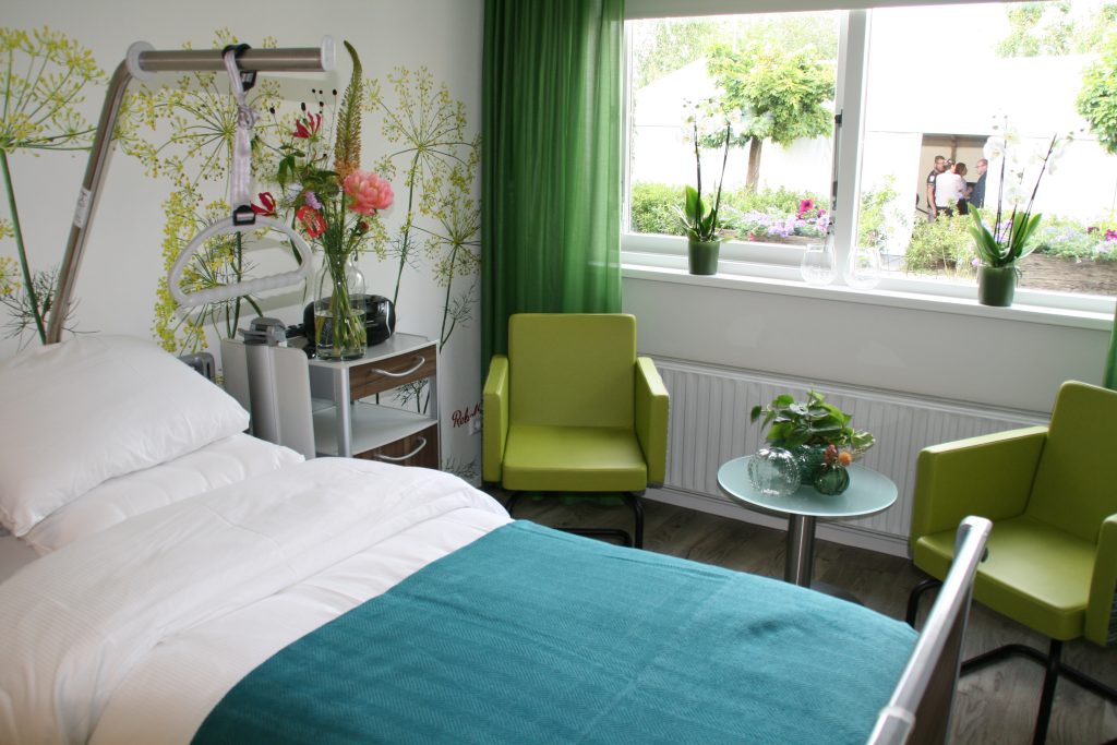 Ook is er een tv en radio/cd-speler op de kamer aanwezig. Het is mogelijk om met de bedden de kamers te verlaten en naar de huiskamer of tuin te gaan. De huiskamer, keuken en buitenruimte zijn voor gezamenlijk gebruik van de gasten en hun naasten. In een huiselijke, ontspannen sfeer kunnen zij hun verhalen delen.